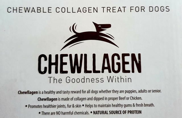 The collagen undergoes shaping and baking resulting in a bread-like texture. It is then dipped in authentic beef or chicken. Comprised mostly of type 1 and type 3 collagen, Chewllagen promotes the production of cartilage, providing joint cushioning and alleviating joint discomfort.