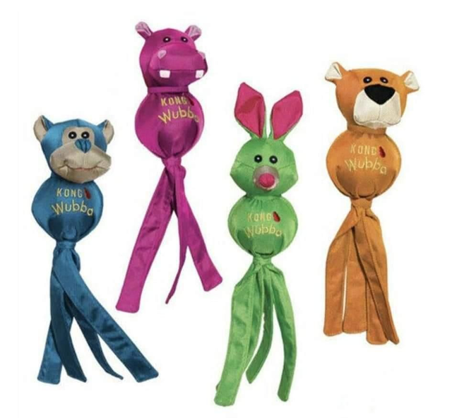 The KONG Wubba Ballistic Friends are the cutest and toughest interactive squeak and shake toys available. These versatile toys are perfect for indoor and outdoor use, and their floppy tails make them easy to pick up and throw. Each toy is covered with durable, reinforced nylon for added toughness.